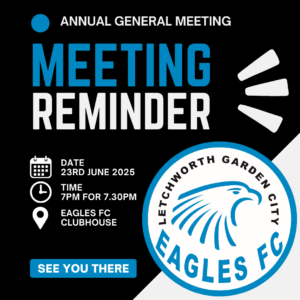 Letchworth Eagles FC AGM – Monday 23rd June We’re pleased to confirm that this season’s Annual General Meeting (AGM) will…