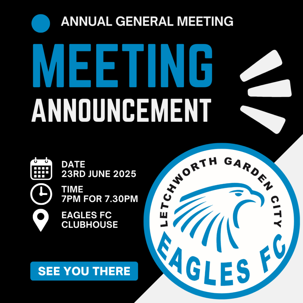 The Annual General Meeting of the Letchworth Garden City Eagles Club will take place on Monday 23rd June from 7pm at the Clubhouse.