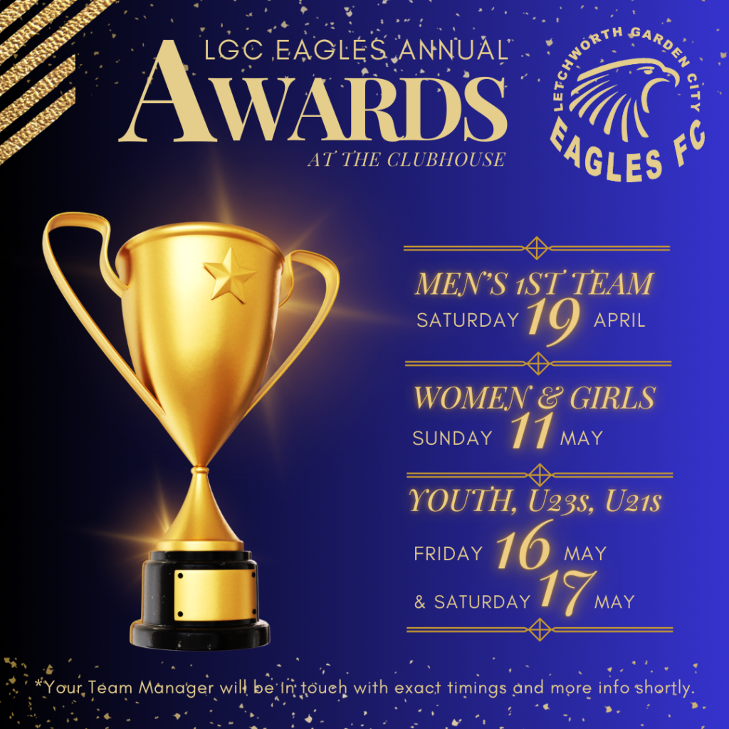 It has been a fantastic season again here at Letchworth Garden City Eagles and we can’t wait to celebrate all of our players and their families, our coaches and managers, together with all the people in the Club who make it all possible.